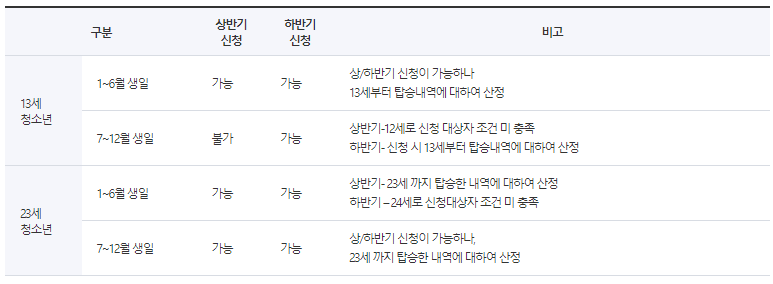 13세 ,24세 신청 가능 시기(예시)