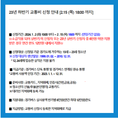 경기도 청소년 교통비 지원사업 신청하기