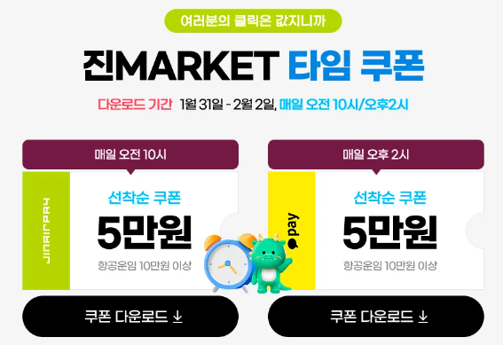 - 1월 31일 ~ 2월 2일 : 매일 오전 10시와 오후 2시에 타임 쿠폰이 선착순지급
