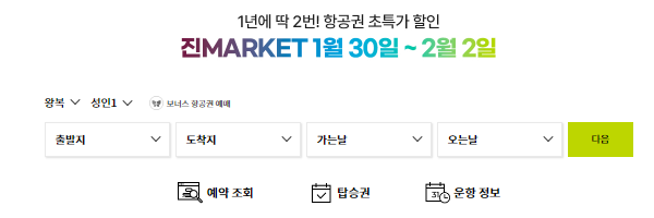 🔷 항공권 예약 : 진에어 홈페이지와 모바일 웹∙앱을 통해 가능