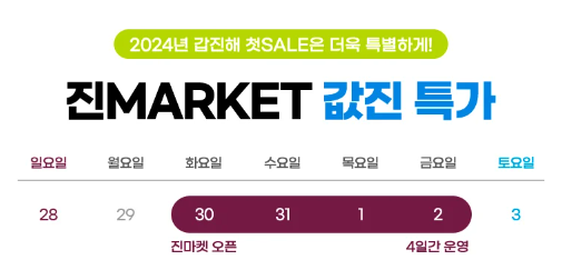 🔷 진마켓 판매기간 : 2024년 01월 31일 ~ 2024년 2월 2일(4일간 진행)