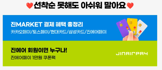- 페이와 카드의 결제금액별 할인혜택 제공 : 진에어페이, 카카오페이, 토스페이, 현대카드, 삼성카드 등