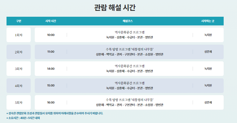 💥 관람 해설 시간은 아래와 같습니다